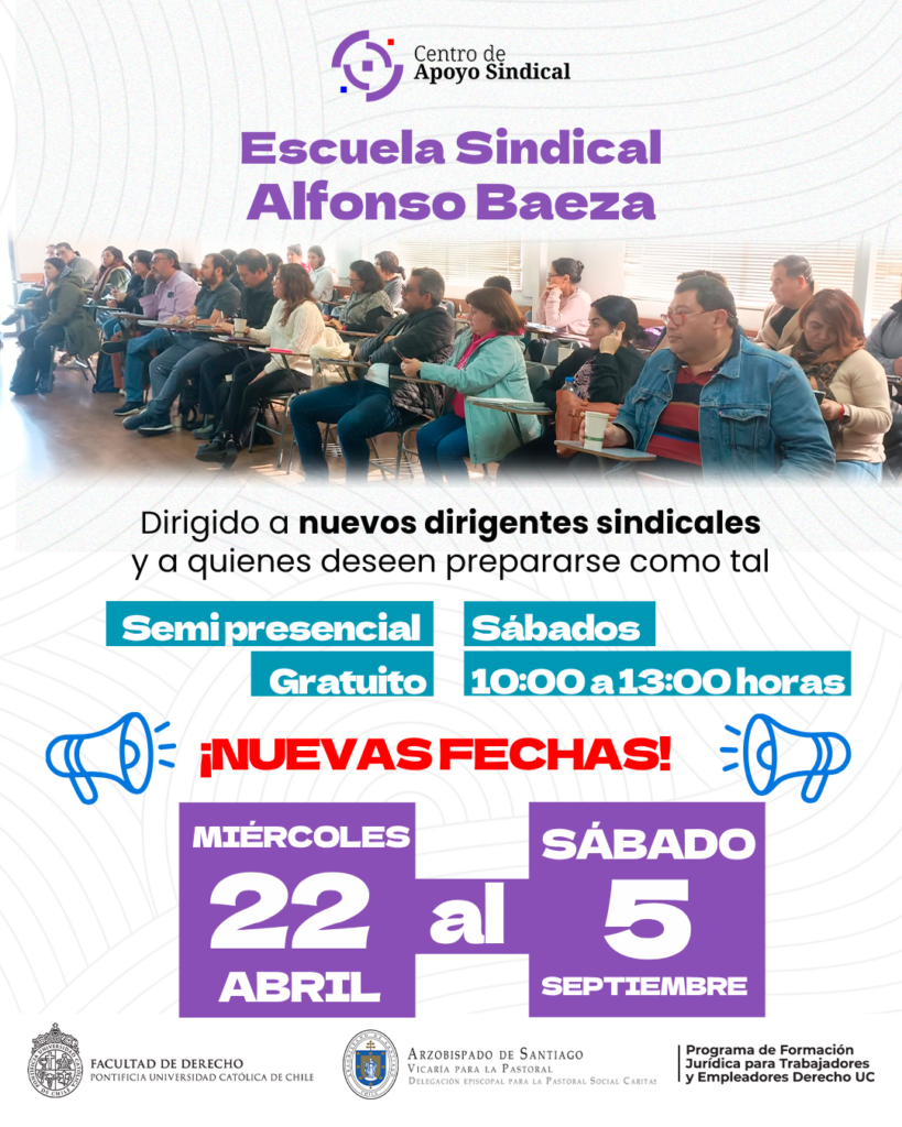 El Centro de Apoyo Sindical, una alianza entre la Delegación Episcopal para la Pastoral Social Caritas (ex Vicaría de Pastoral Social Caritas) y el Programa de Formación Jurídica para Trabajadores y Empleadores de la Facultad de Derecho de la UC.